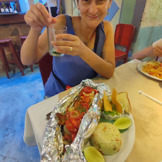 Comme prévu, nous concluons cette journée de la plus belle des manières en filant dans un restaurant. Big Fish est un petit établissement, sur les bords de rives du lac Peten Itza, les prix y sont abordables et la nourriture excellente. Nous sommes ravis de ce choix pour déguster la spécialité locale.