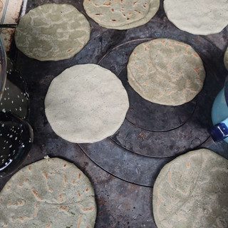 Nous sommes accueillis très chaleureusement par la famille d'Elvin au grand complet : de la grand mère à la petite fille et même le chien. C'est toujours aussi surprenant de voir qu'ils vivent tous ensemble au sein d'une seule et même habitation, loin de nos habitudes et de notre besoin d'espace individuel. En tout cas, Elvin tient bien de sa mère : elle est encore plus bavarde et pleine d'énergie que lui, quelle pêche ! Nous avons le droit d'assister à l'indétrônable préparation des tortillas et même de s'y essayer. Le geste paraît simple lorsque l'on voit ces femmes tapper des mains pour modeler la pâte, la réalité en est autre. J'en casse une sur deux et l'autre a forcément un défaut. Heureusement, les locaux sont patients et rectifient nos maladresses.